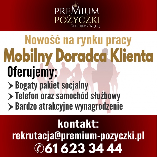 Firma Premium Pożyczki S.A. zatrudni na nowo utworzone stanowisko Mobilnego Doradcy Klienta.